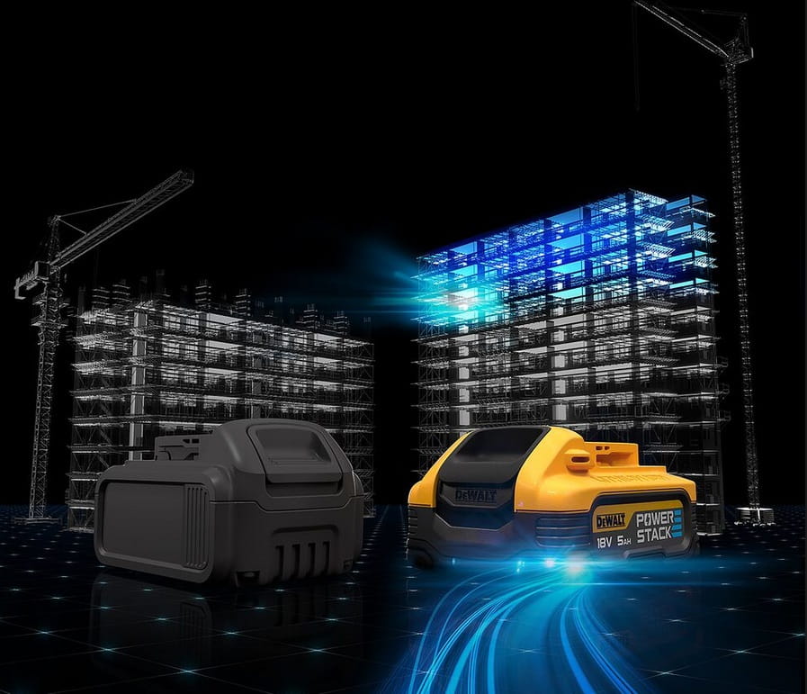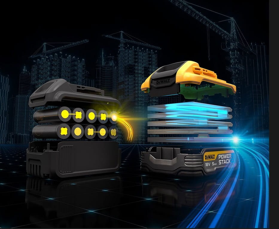 - DEWALT POWERSTACK wykorzystuje technologie płaskich ogniw, aby zapewnić większą wydajność niż wcześniej.