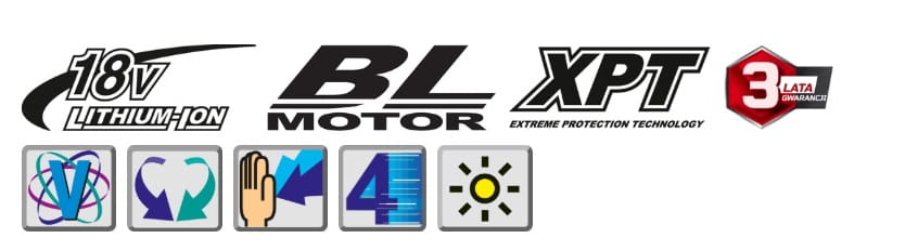 - Obsługiwane akumulatory: 1,5 / 2,0 / 3,0 / 4,0 / 5,0 / 6,0 Ah