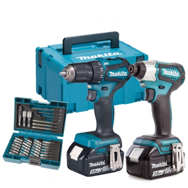 Najnowszy zestaw narzędzi w technologi silnika bezszczotkowego BL motor o podwyższonych parametrach szczelności XPT. Zestaw wyposażony w nowy Wkrętak udarowy z elektroniczną regulacją prędkości obrotowe i częstotliwości udaru z ekstremalnie dużym momentem obrotowym 140 Nm. Dostarczana w walizce systemowej MAKPAC z 2 akumulatorami BL1830B (18 V / 3,0 Ah) i szybką ładowarką DC18RC. Ładowanie akumulatora odbywa się w ciągu 22 minut o czym informuje sygnał dźwiękowy.