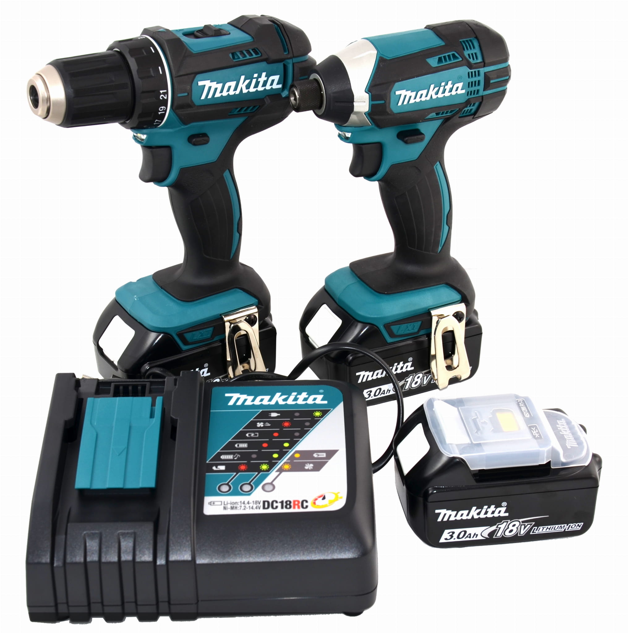 Zestaw narzędzi akumulatorowych renomowanej firmy Makita.