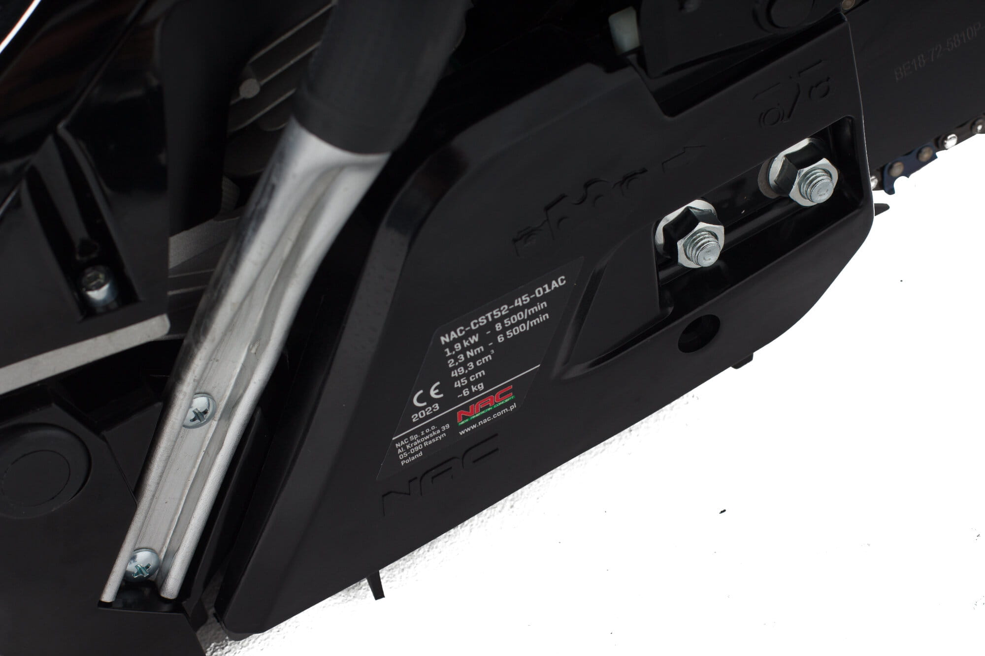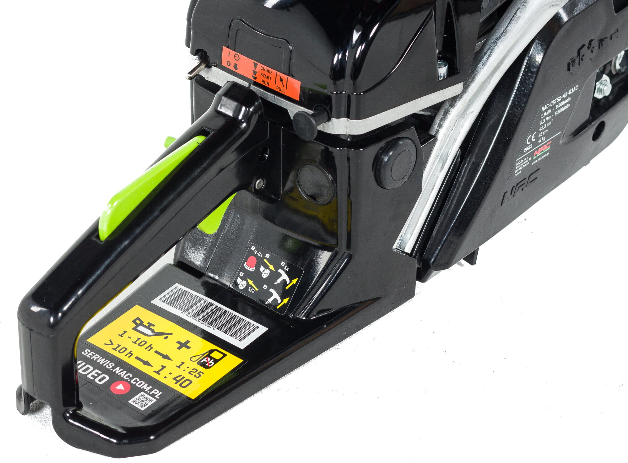 - Dodatkowe wyposażenie. W zestawie wraz z piłą spalinową NAC CST52-45-01AC kupujący otrzyma: prowadnicę łożyskową, wkrętak uniwersalny, a także klucz do świec z wkrętakiem.