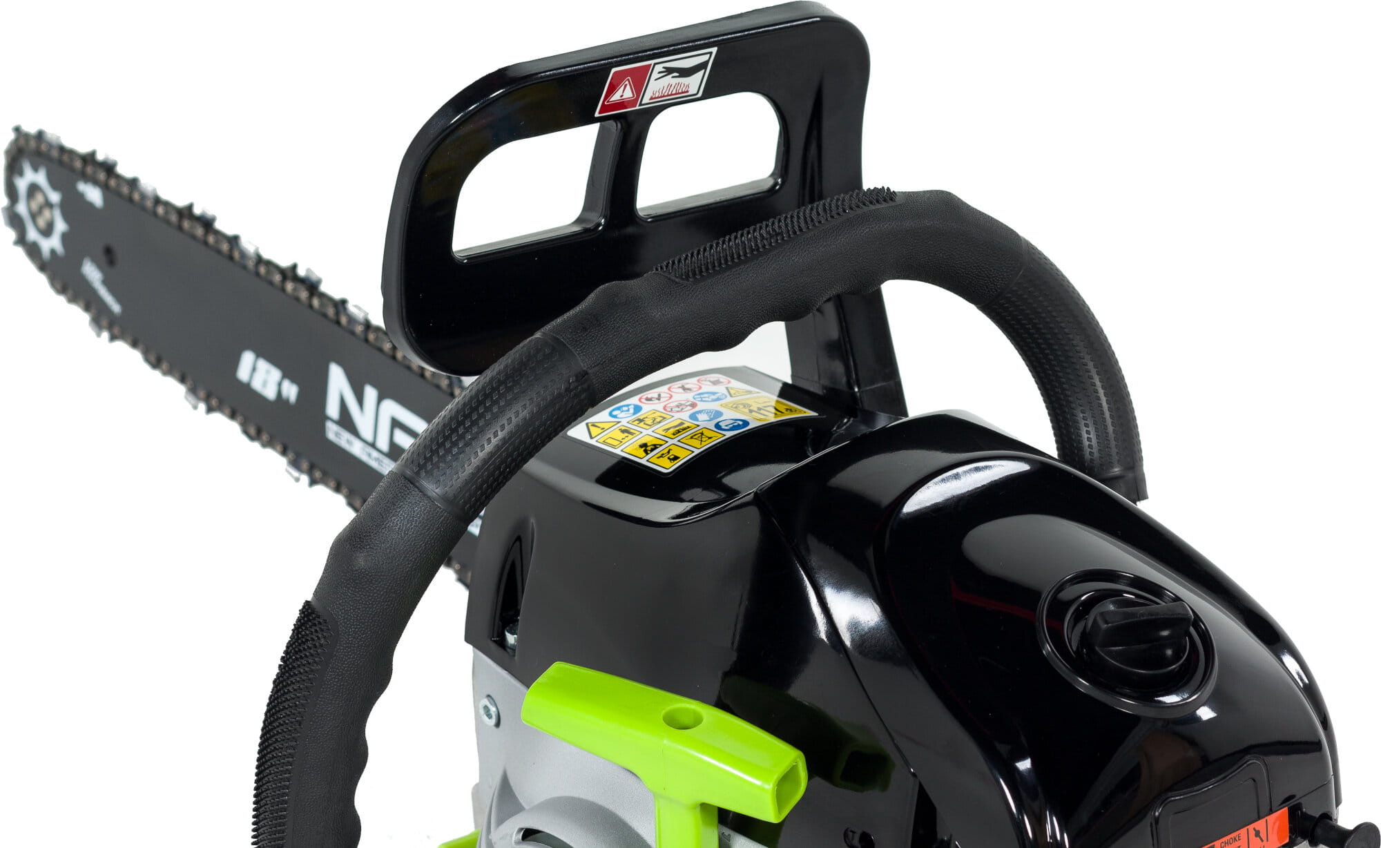 - Wysoka trwałość. Solidny uchwyt i kompaktowa, ergonomiczna konstrukcja maszyny sprawi, że jest to idealny sprzęt dla każdego miłośnika prac ogrodowych lub osoby zajmującej się działką. Urządzenie zostało wyposażone w antywibracyjną rączkę, a wbudowane amortyzatory skutecznie amortyzują drgania piły.