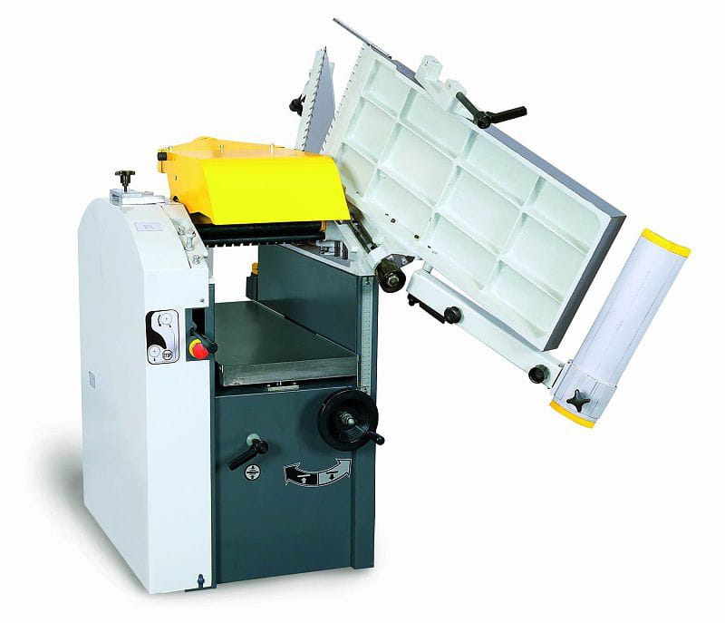 - stół strugarki można ustawiać na wysokość 0-5mm, a stół przesuwny o szerokości 310 mm jest sterowany gałką obsługiwaną